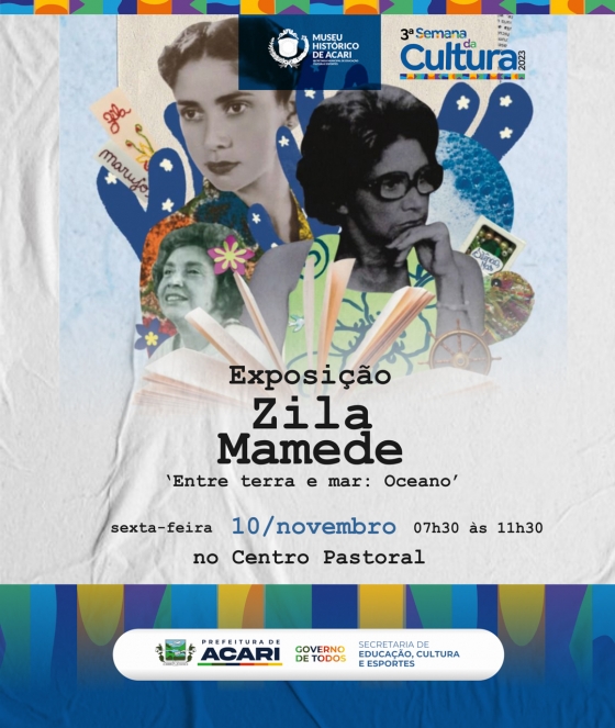 A 3ª Semana da Cultura, receberá exposição em homenagem aos 95 anos da escritora Zila Mamede, que possui como tema “Zila Mamede: entre Terra e Mar: Oceano”. A mostra tem painéis feitos de maneira artesanal e, de acordo com Ana Catarina Silva Fernandes, artista plástica promotora da exposição, as peças reunidas expõem uma parte da percepção do mundo a respeito dos sentires da leitura do universo poético de Zila Mamede.