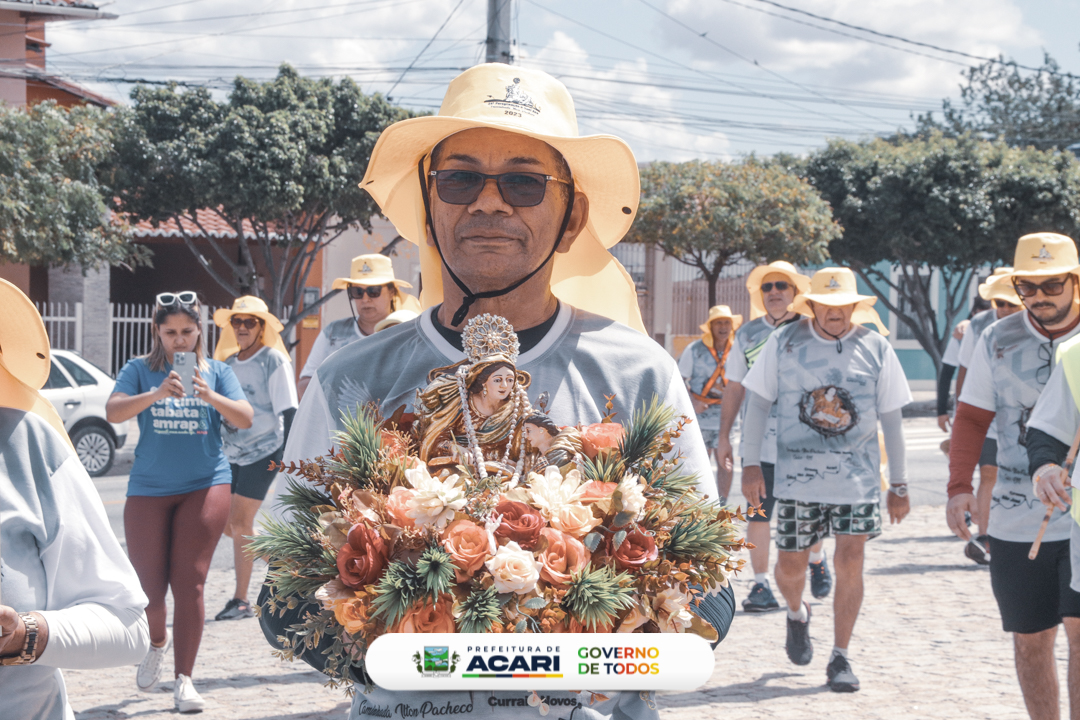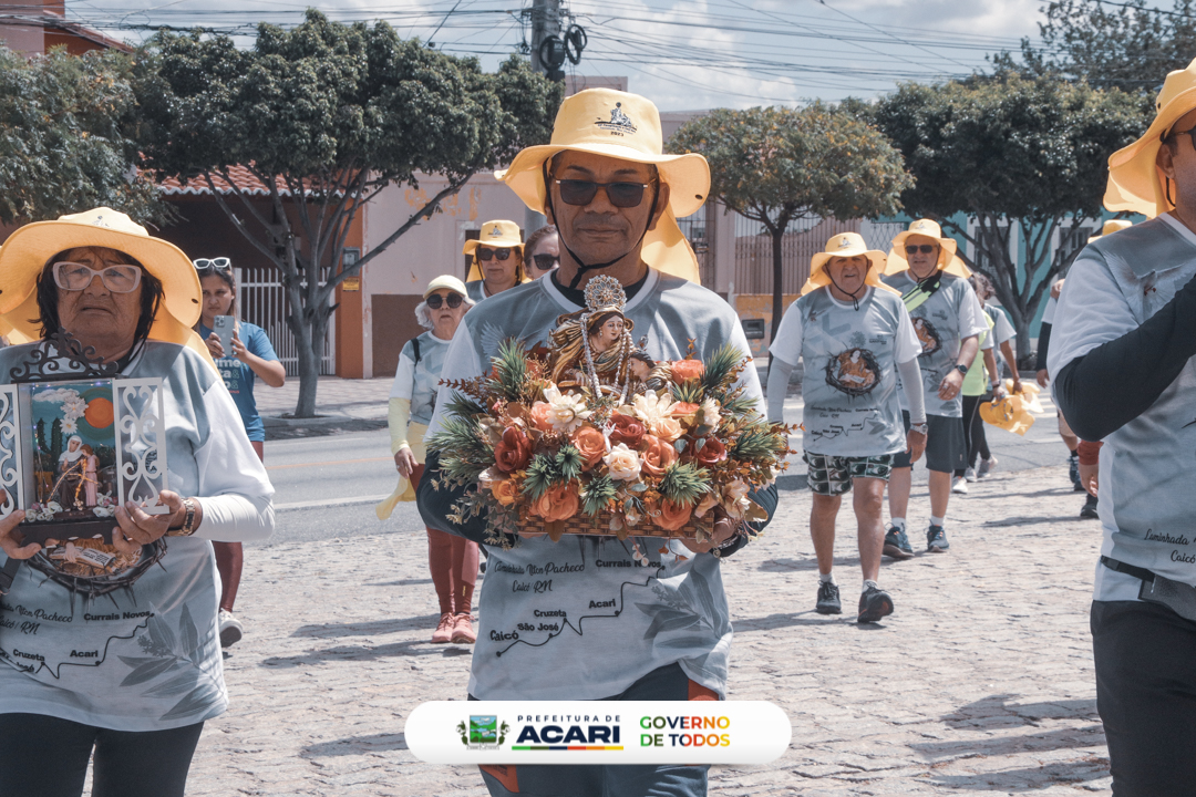 Em demonstração de alegria e solidariedade, a Prefeitura de Acari, oferece um almoço, antes da retomada da caminhada sentido à cidade de Cruzeta. A previsão é de que eles cheguem no destino final - Caicó - na quarta-feira, dia 19 de julho, véspera da abertura da festa da padroeira.