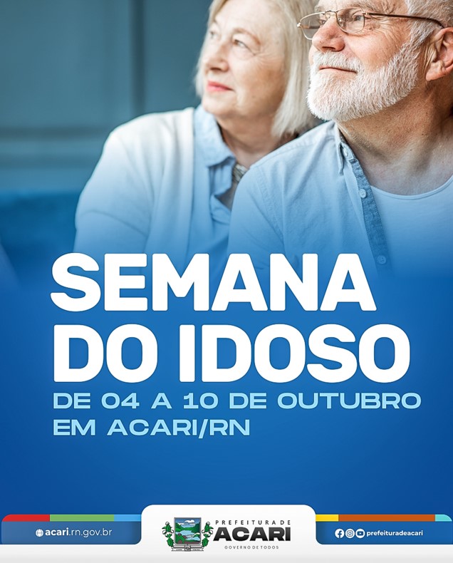 Cuidar dos nossos idosos é preservar a nossa história! Pensando assim, a #PrefeituraDeAcari, através da Secretaria Municipal de Trabalho, Habitação e Assistência Social, realizará uma semana inteira voltada aos nossos queridos idosos, será a SEMANA DO IDOSO 2022. Os eventos acontecerão de 04 a 10 de outubro, com várias atividades. Confira nossa programação: