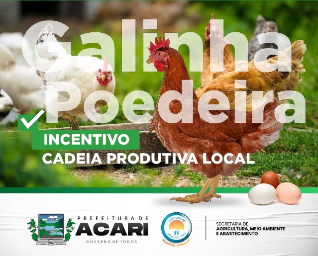 Mundialmente, a produção de ovos está em grande evidência devido as questões oriundas dos consumidores, das Organizações Não Governamentais, dos próprios produtores e da sociedade em geral. Tendo esses parâmetros e sabendo das potencialidades do município de Acari, em relação à produção de ovos, a Gestão Municipal (Governo de Todos), em parceria com o Ministério do Desenvolvimento Regional, estará alinhando as políticas de incentivo à cadeia produtiva da galinha poedeira.