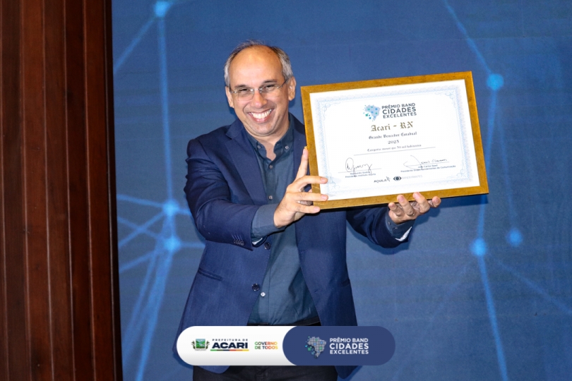 A Gestão Municipal de Acari se destacou ao conquistar o 1º lugar no Prêmio Band Cidades Excelentes 2023, na categoria de municípios com até 30 mil habitantes. Este prêmio, considerado o "Oscar da Administração Pública" no Brasil, foi entregue em uma cerimônia realizada na noite da última terça-feira, 7 de novembro, no auditório da FIERN, em Natal/RN.