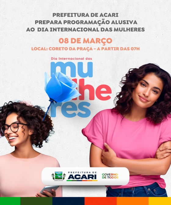Pensando assim, a Gestão Municipal de Acari preparou uma programação alusiva ao dia Delas, que iniciará às 07h do dia 08 de março, no Coreto da Praça. Confira a PROGRAMAÇÃO: