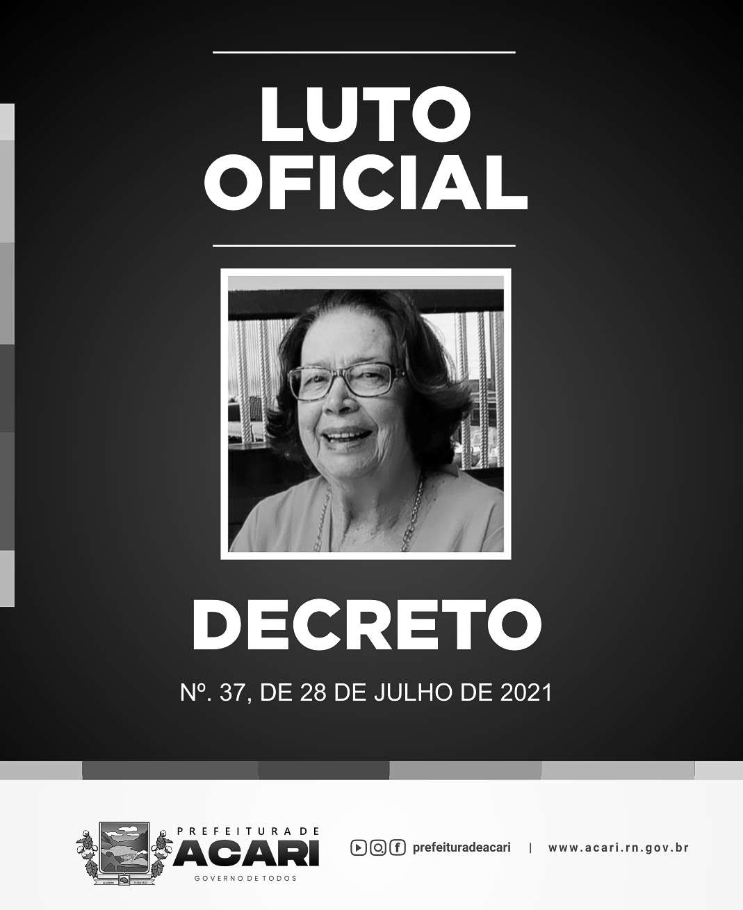 Decreta luto oficial no Município de Acari em virtude do falecimento de Maria José Mamede Galvão.