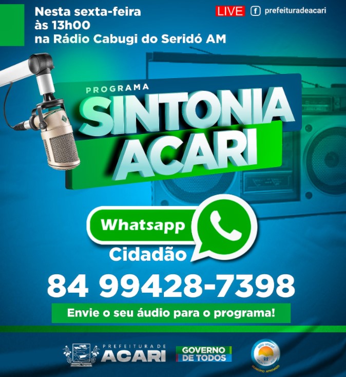 Toda sexta-feira é apresentado o programa semanal de rádio da Prefeitura de Acari, e agora temos uma novidade no ar: O WHATSAPP CIDADÃO!