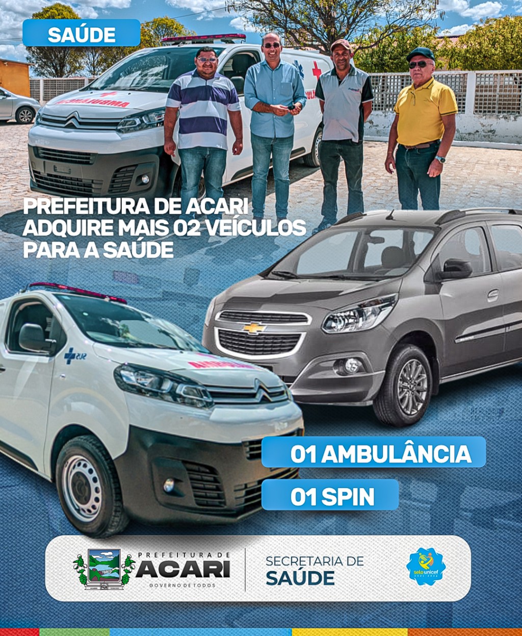 A #PrefeituraDeAcari, pensando em otimizar ainda mais os trabalhos da saúde municipal, conseguiu adquirir mais dois novos veículos, sendo uma ambulância, que contou com o decisivo apoio do deputado Ubaldo Fernandes, através de uma emenda parlamentar responsável por quase a metade do valor do veículo e um carro tipo Chevrolet Spin, que estará prestando serviços à secretaria de saúde, uma conquista que contou com o apoio da senadora Zenaide Maia, também através de emenda parlamentar. As aquisições também foram somas de esforços e comprometimentos de todos que fazem a Secretaria Municipal de Saúde, Comissão Permanente de Licitações e Secretaria Municipal de Finanças vêm fortalecer a frota municipal e prestar relevantes serviços à saúde do município.